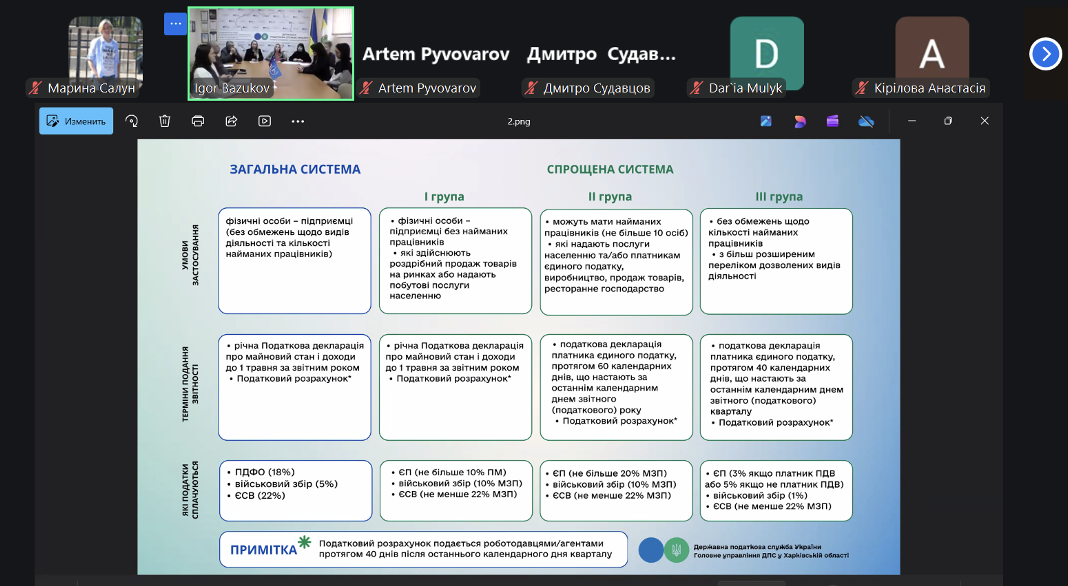 Метою семінару стало надання молодим підприємцям практичних знань щодо організації підприємницької діяльності фізичної особи-підприємця, вибору оптимальної системи оподаткування, розуміння податкових зобов’язань та порядку подання звітності, а також використання електронних сервісів держави у щоденній діяльності підприємця.