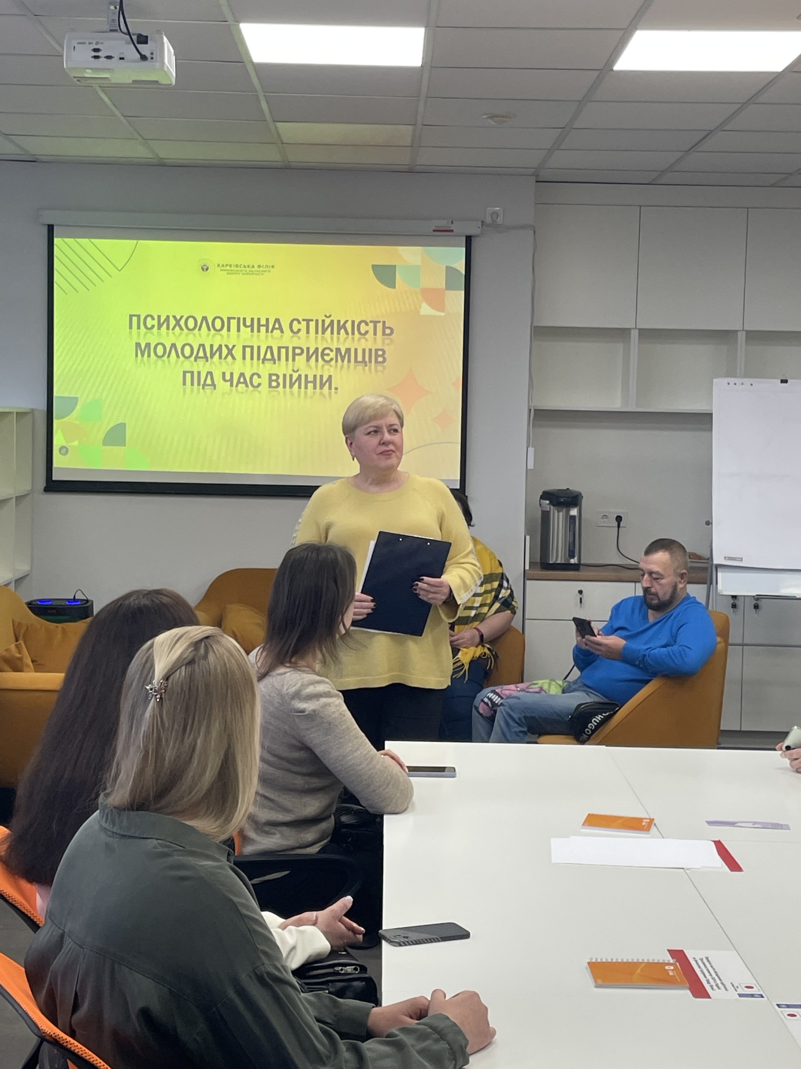 Спікерами семінару виступили представники Харківської філії Харківського обласного центру зайнятості: Альона Радіонова – психолог сектору профорієнтації; Лариса Харіна – психолог, завідувач сектору профорієнтації. Під час виступів спікери поділилися практичними рекомендаціями щодо розвитку внутрішніх ресурсів підприємця, формування стійкості до стресу та невизначеності, а також окреслили підходи до ефективного використання особистісного потенціалу у підприємницькій діяльності.