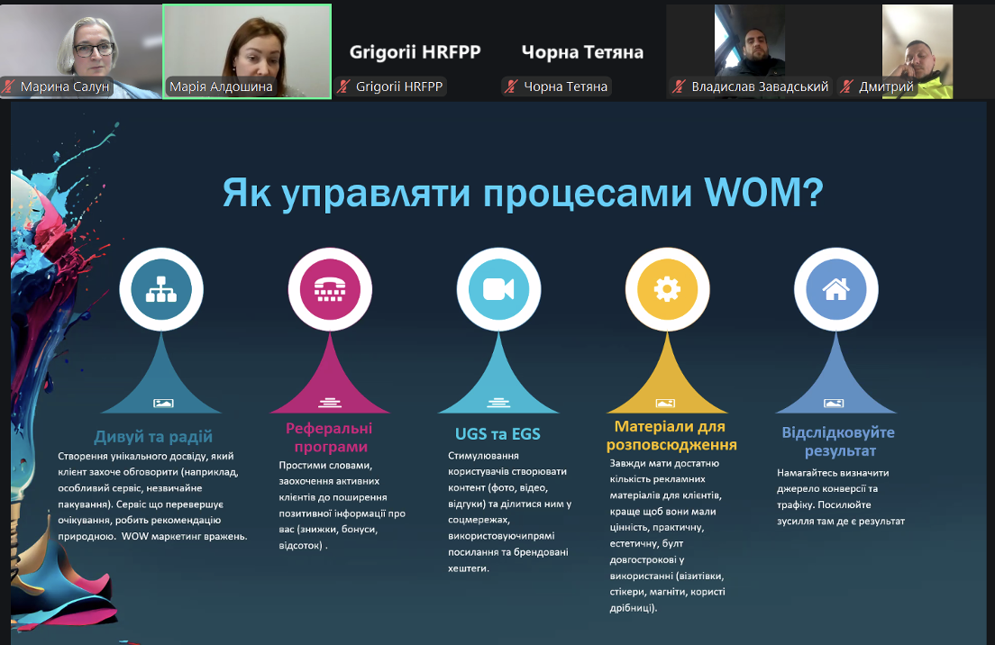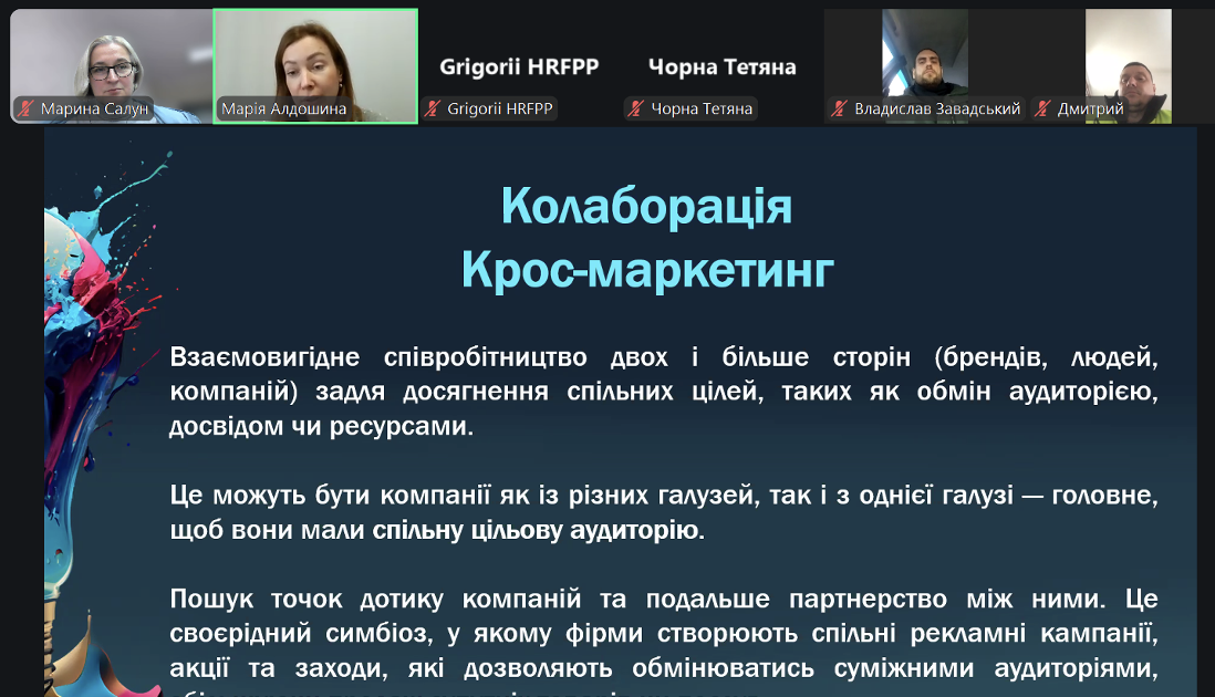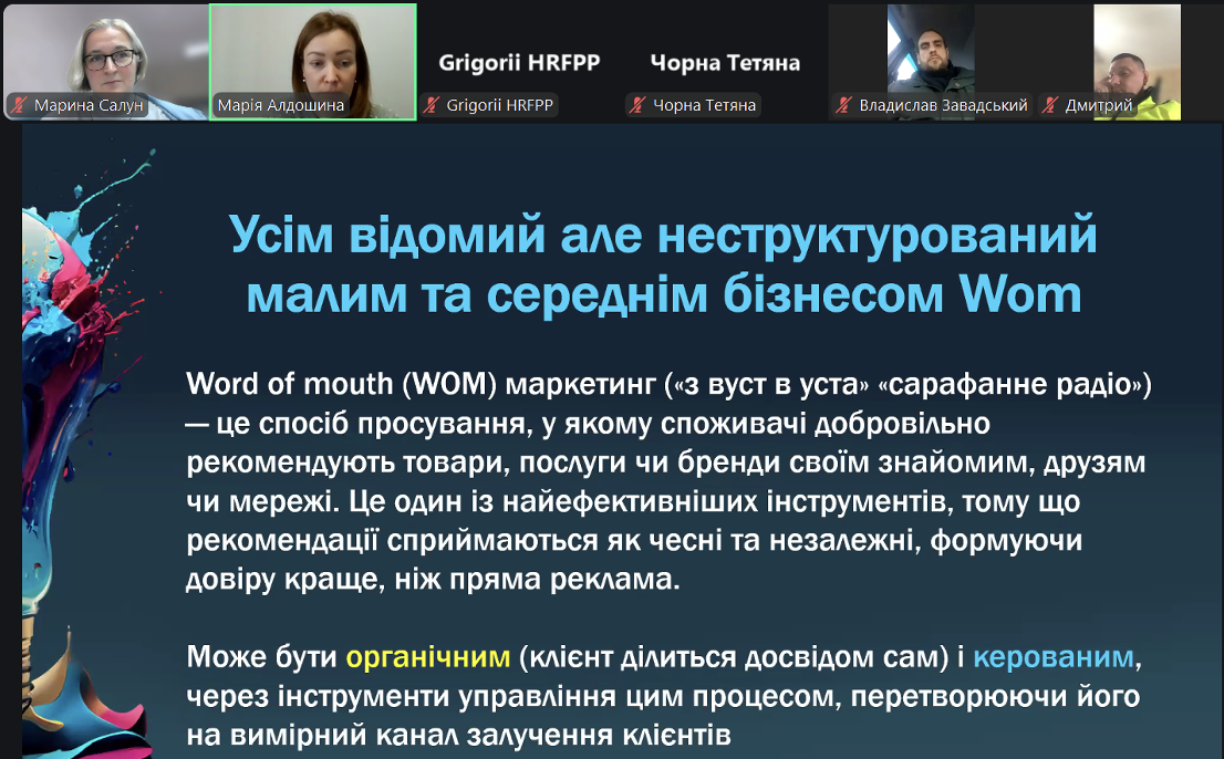 Під час семінару було розглянуто сучасні підходи до просування малого бізнесу з мінімальними витратами. Учасники ознайомилися з практичними інструментами крос-маркетингу та реферального маркетингу, дізналися про механізми побудови партнерських програм і формування лояльної клієнтської бази без значних рекламних бюджетів. Окрему увагу було приділено оновленим алгоритмам Інстаграм 2026 р., принципам органічного охоплення та підвищення залученості аудиторії. Спікерка також представила добірку корисних сервісів штучного інтелекту для створення текстового, візуального та відеоконтенту, а також інструменти аналітики для дослідження споживчого ринку та поведінки клієнтів.