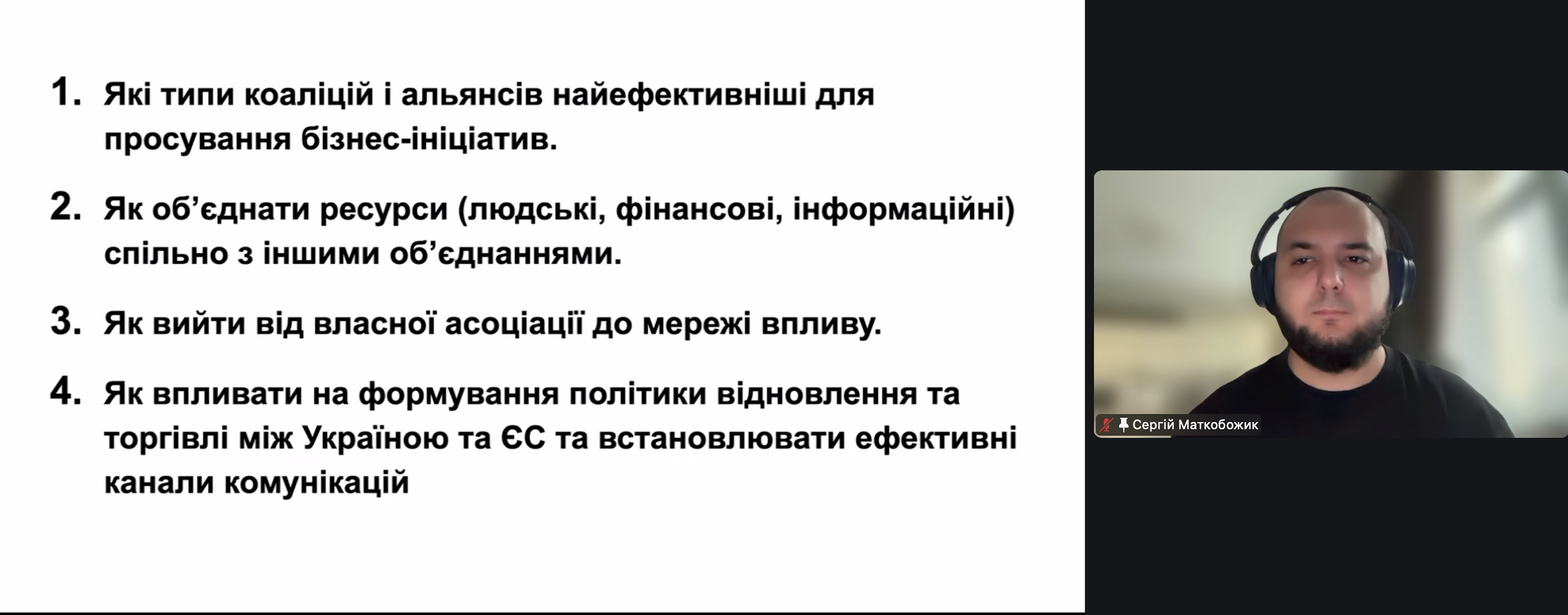 вплив бізнес-асоціацій на політику відновлення і торгівлі між Україною та ЄС;