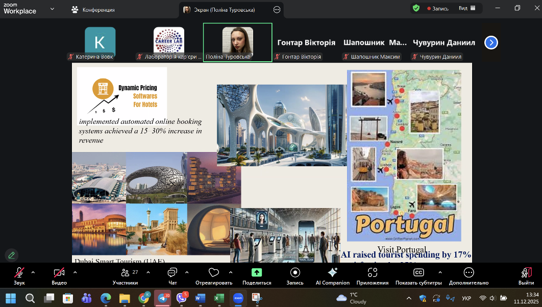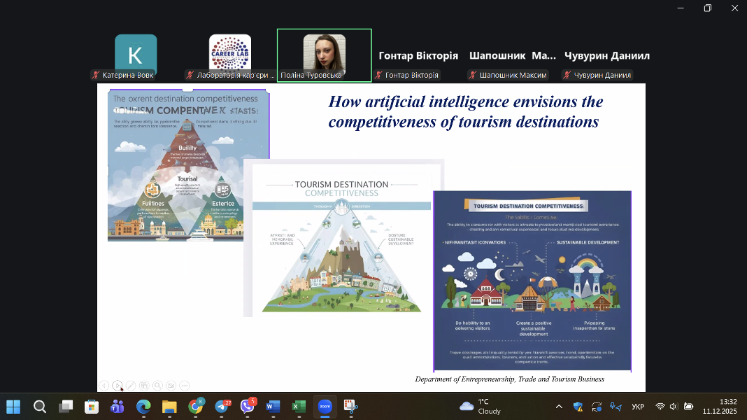Студентки презентували результати своїх досліджень та поділилися власними ідеями щодо розвитку європейського простору у контексті інтеграції Штучного інтелекту у сфери підприємництва та туризму.